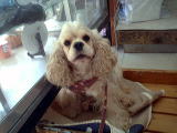 お店1番の看板犬! ワンっと鳴いたのは一度だけ! お水が無かったの・・・。 |
